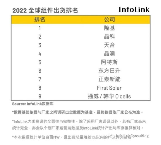 此外,4月17日,在 InfoLink Consulting发布的2022年全球组件出货排行Top10中,通威股份也得胜上榜,与韩国厂商韩华Q cells比肩第九。